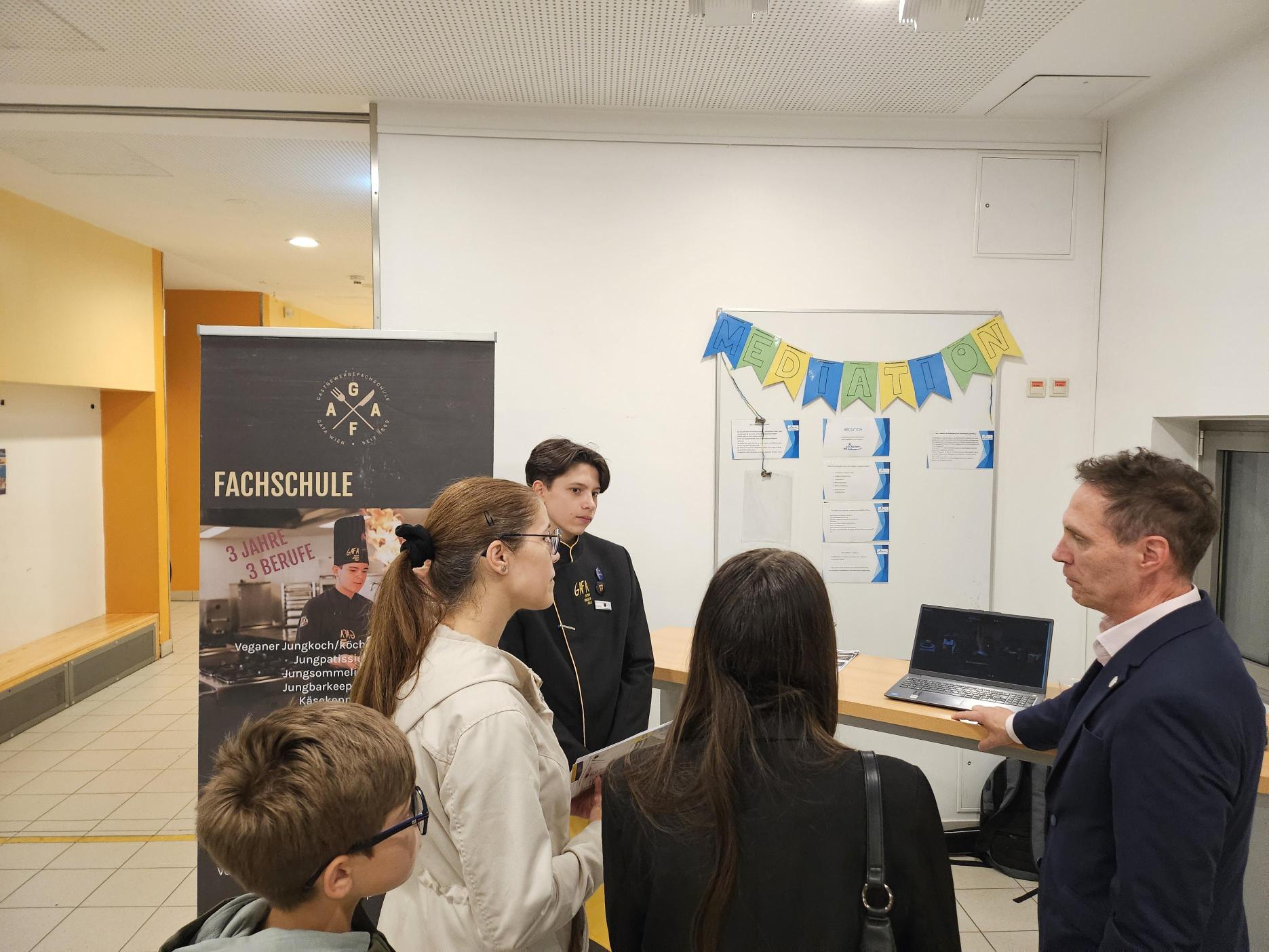 Die Familien der 4. Klassen erhielten, nach einem einleitenden Vortrag über die bestehenden Ausbildungswege in Österreich, die Möglichkeit, sich von insgesamt 16 weiteführenden Schulen bzw. ihren Vertreter*innen beraten zu lassen und Eindrücke zu gewinnen.